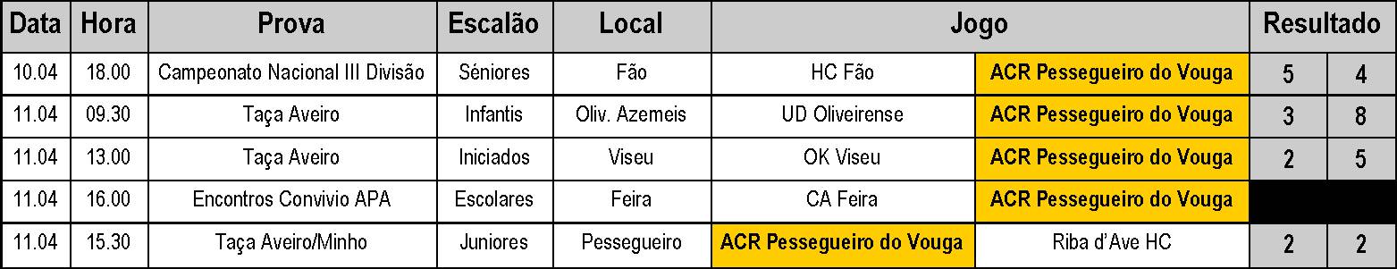JOGOS E RESULTADOS - 10 E 11 DE ABRIL