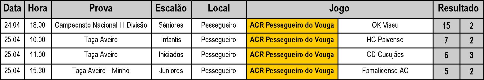 JOGOS E RESULTADOS - 24 E 25 DE ABRIL