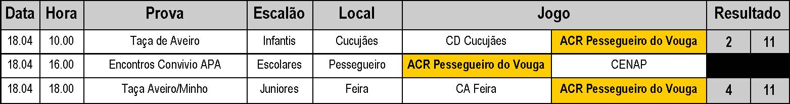 JOGOS E RESULTADOS - 18 DE ABRIL
